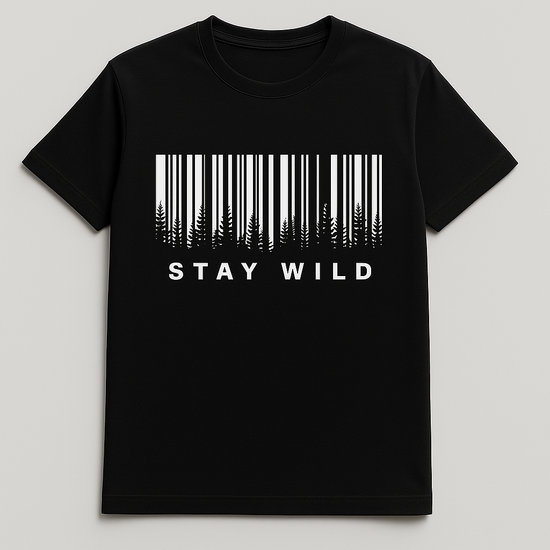 Unleash your inner explorer with our "Stay Wild" Barcode T-Shirt.